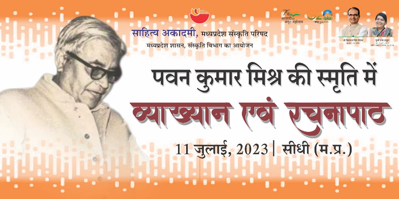 साहित्य अकादमी, मध्यप्रदेश संस्कृति परिषद्, मध्यप्रदेश शासन संस्कृति विभाग भोपाल द्वारा पवन कुमार मिश्र की स्मृति में दिनांक 11 जुलाई, 2023 को दोपहर 2.00 बजे सरस्वती उच्चतर माध्यमिक विद्यालय सभागार, मडरिया, सीधी (म.प्र.) में व्याख्यान एवं रचनापाठ आयोजित है। कार्यक्रम प्रथम सत्र के मुख्य अतिथि श्री विजय सिंह परिहार, अध्यक्षता डाॅ. राजकरण शुक्ल करेंगे। डाॅ. लहरी सिंह एवं श्री राजबहोर पाठक व्याख्यान देंगे। कार्यक्रम के दूसरे सत्र में श्री अंजनी सिंह ‘सौरभ’, श्री रमाकांत द्विवेदी ‘सावर’, श्री प्रांजल विनय मिश्र, श्री कुंजल साकेत ‘कुंज’, श्री बृजेश बहादुर सिंह और सुश्री अपूर्वा चतुर्वेदी अपनी रचनाओं का पाठ करेंगे। कार्यक्रम के स्थानीय संयोजक डाॅ. श्रीनिवास शुक्ल ‘सरस’ होंगे। आयोजित व्याख्यान एवं रचनापाठ में आप सभी सादर साग्रह आमंत्रित हैं। डाॅ. विकास दवे निदेशक साहित्य आदमी, भोपाल