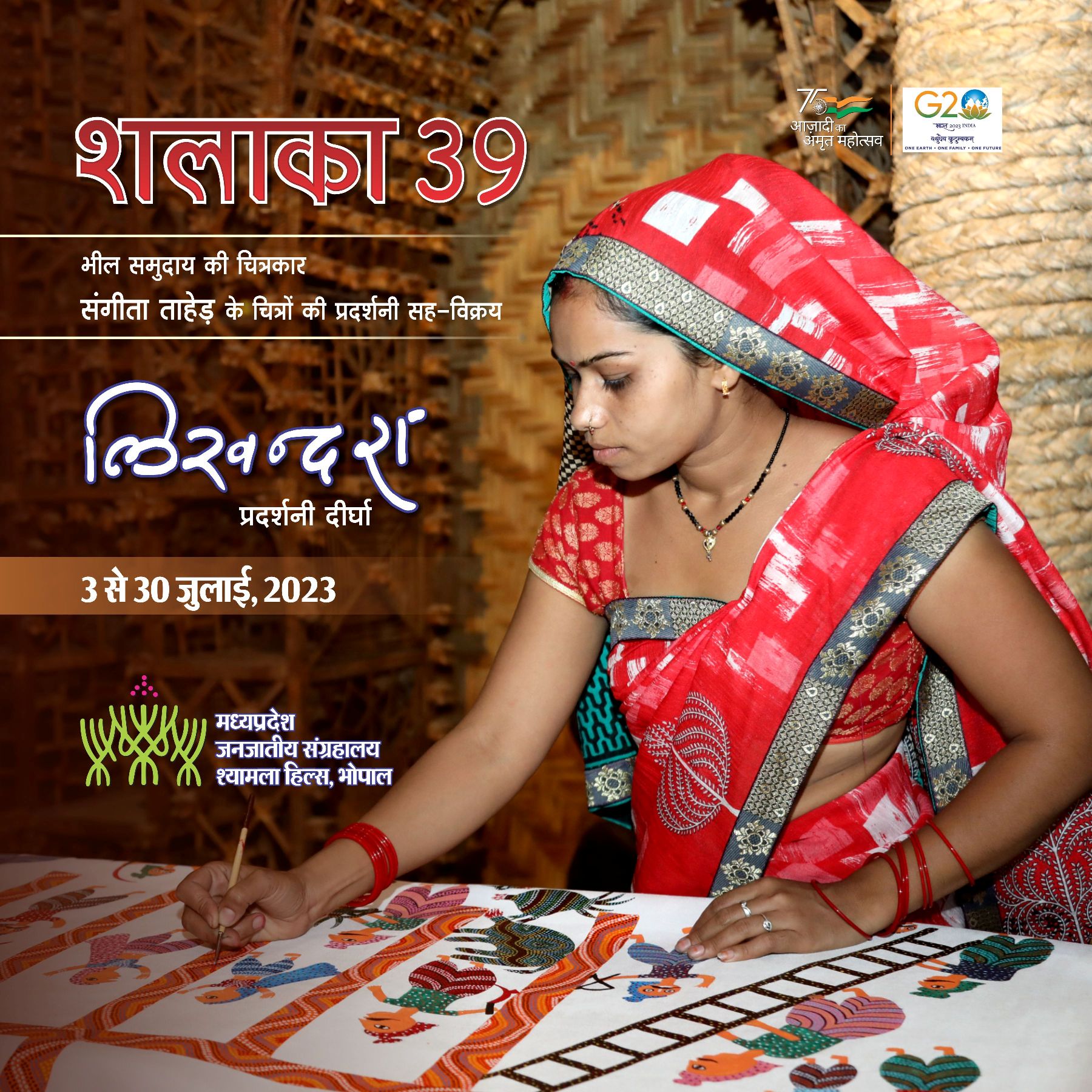 शलाका 39 भील समुदाय की चित्रकार संगीता ताहेड़ के चित्रों की प्रदर्शनी सह - विक्रय लिखन्दरा प्रदर्शनी दीर्घा 3 से 30 जुलाई, 2023 मध्यप्रदेश जनजातीय संग्रहालय श्यामला हिल्स, भोपाल