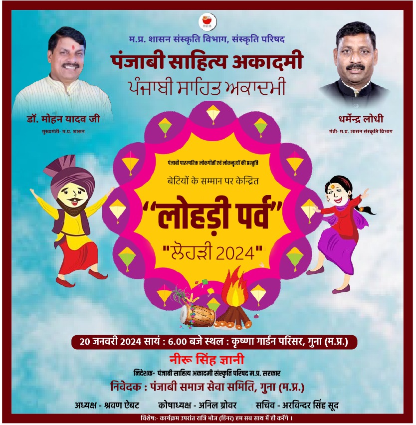 पंजाब के प्रमुख पर्व लोहड़ी के अवसर पर 20 जनवरी 2024 को पंजाबी पारम्परिक सांस्कृतिक लोकनृत्य एवं लोकसंगीत का आयोजन किया जाएगा।