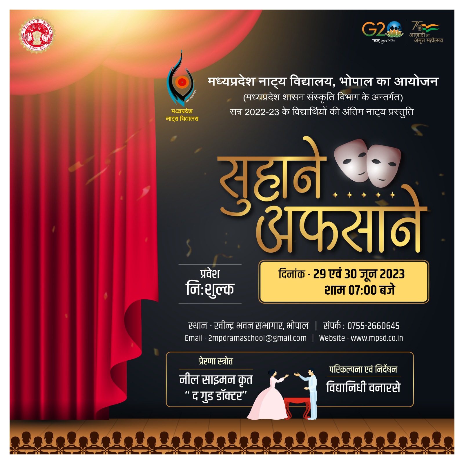 मध्यप्रदेश नाट्य विद्यालय के वर्तमान सत्र २०२२-२३ के विद्यार्थियों के साथ आमंत्रित अतिथि व्याख्याता श्री विद्यानिधी वनारसे के निर्देशन में तैयार नाट्य प्रस्तुति।