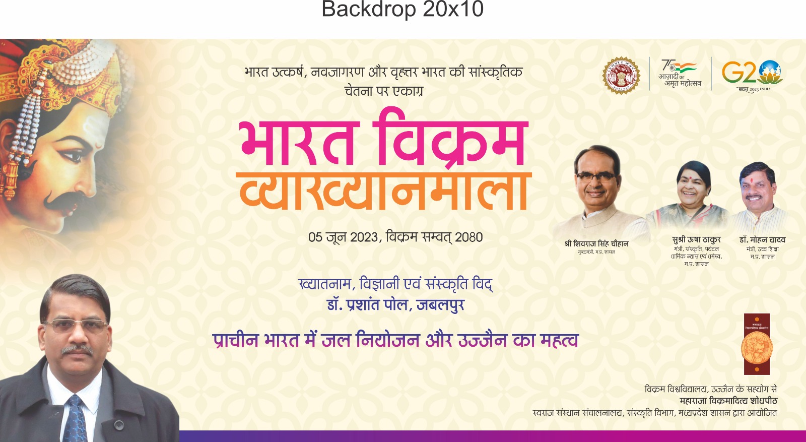 उज्जैन में आगामी 5 जून 2023 को स्वर्ण जयंती सभागार, विक्रम विश्वविद्यालय में शाम 4 बजे ''प्राचीन भारत में जल नियोजन और उज्जैन का महत्व'' विषय पर भारत विक्रम व्याख्यानमाला का आयोजन किया जा रहा है। महाराजा विक्रमादित्य शोधपीठ द्वारा आयोजित इस कार्यक्रम में माननीय डॉ. मोहन यादव, उच्च शिक्षा मंत्री मध्यप्रदेश शासन मुख्य अतिथि के तौर पर उपस्थित रहेंगे। जबकि विषय विशेषज्ञ के रूप में जाने माने विज्ञानी, संस्कृतिविद् डॉ. प्रशांत पोल सम्मिलित होंगे। कार्यक्रम की अध्यक्षता अश्विनी शोध संस्थान के प्रमुख डॉ. आर.सी. ठाकुर करेंगे। महाराजा विक्रमादित्य शोधपीठ के निदेशक श्रीराम तिवारी ने बताया कि आज जल संकट भारत ही नहीं पूरी दुनिया की समस्या बनती जा रही है। जलवायु परिवर्तन ने समाज के सामने नया संकट खड़ा कर दिया है। कहीं अकाल तो कहीं बाढ़ आ रही है। बेमौसम बरसात और सूखा आज आम हो गया है। ऐसी स्थिति में हमें पुन: अपने प्राचीन इतिहास को देखने और उस समय के प्रयोगों को समझने की जरूरत है। 5 जून को ''प्राचीन भारत में जल नियोजन और उज्जैन का महत्व'' विषय पर एक दिवसीय विचार विमर्श का आयोजन किया जा रहा है। जिसमें जाने माने संस्कृतिविद डॉ. प्रशांत पोल अपनी बात रखेंगे।