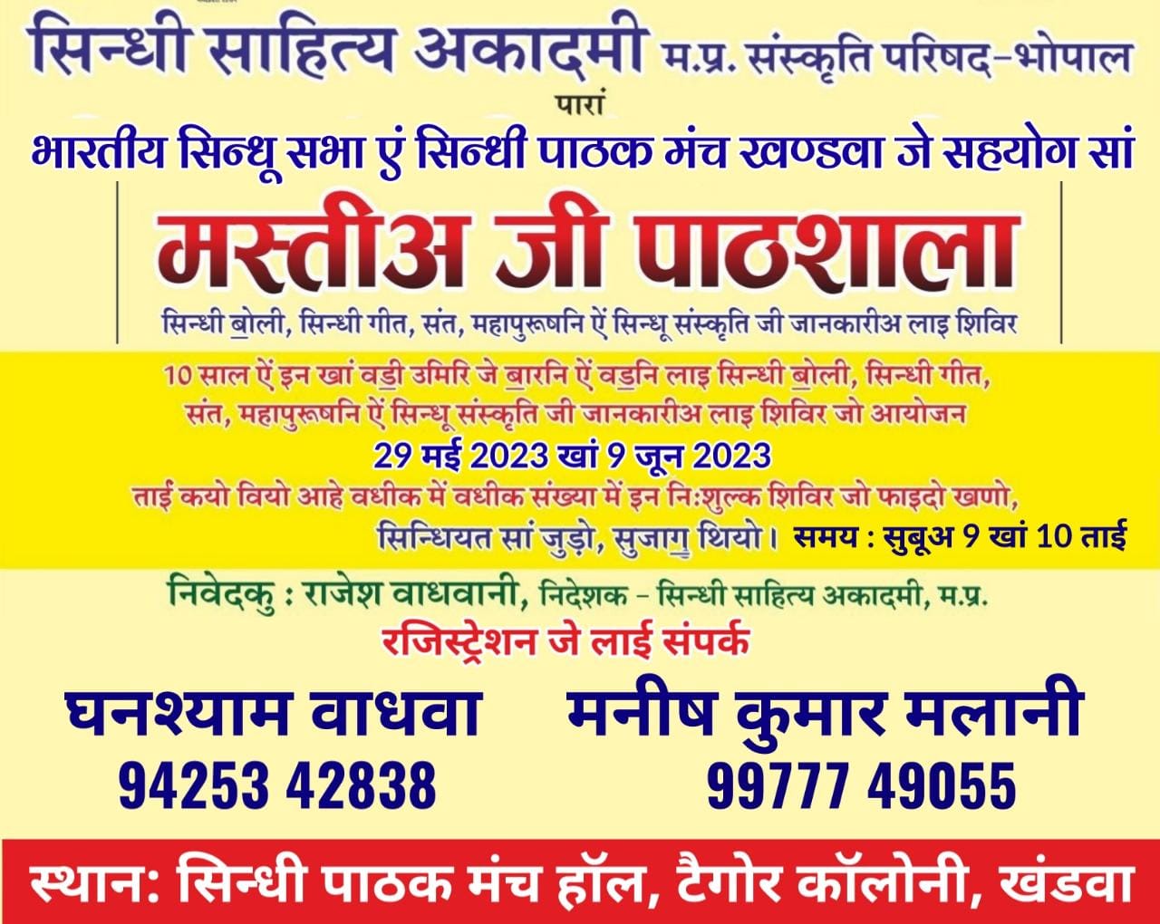 कार्यक्रम का स्थान: सिन्धी पाठक मंच खण्डवा