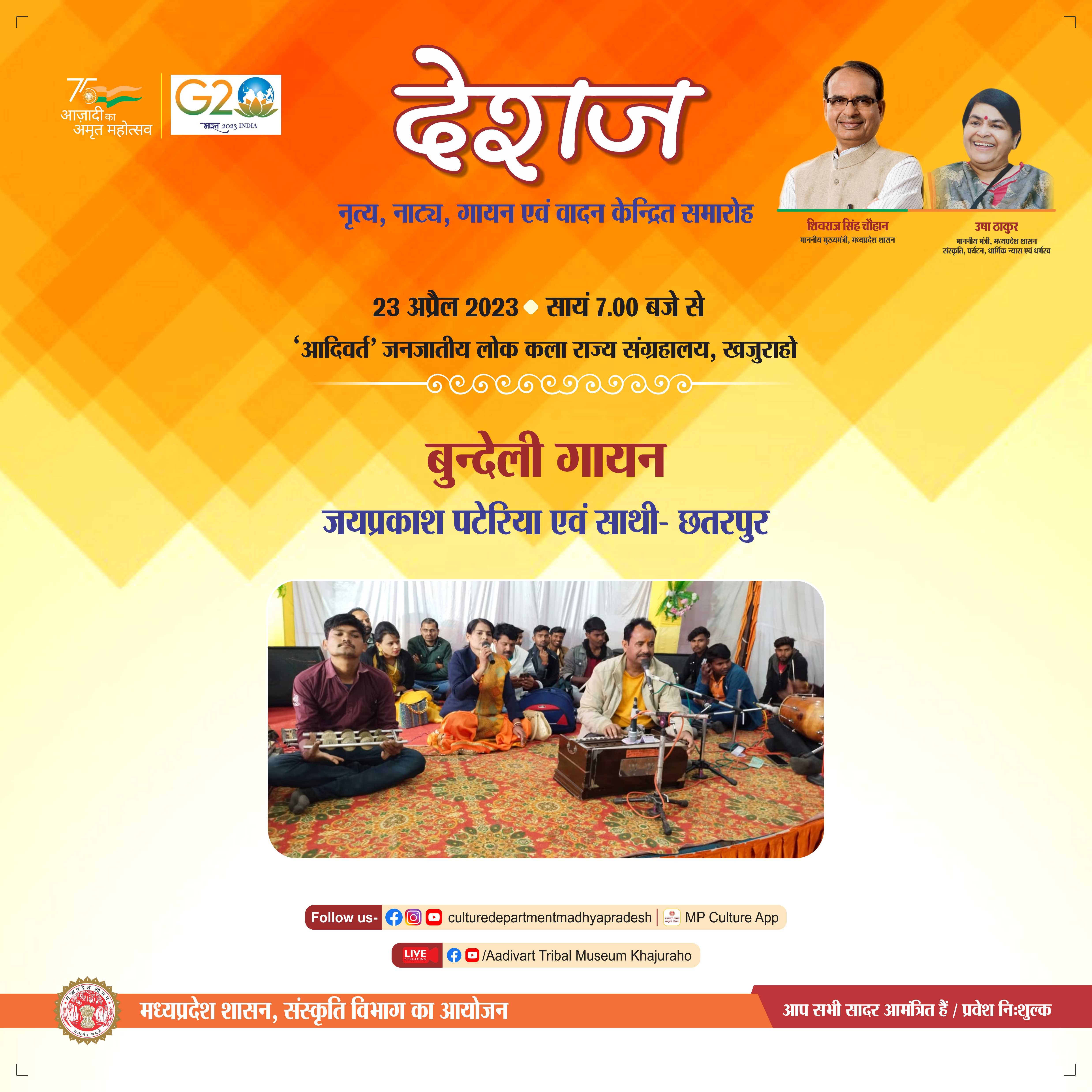 II देशज II नृत्य / नाट्य / वादन / गायन प्रस्तुतियों एकाग्र समारोह प्रति रविवार सांस्कृतिक गाँव 'अदिवर्त' जनजातीय लोक कला राज्य संग्रहालय - खजुराहो