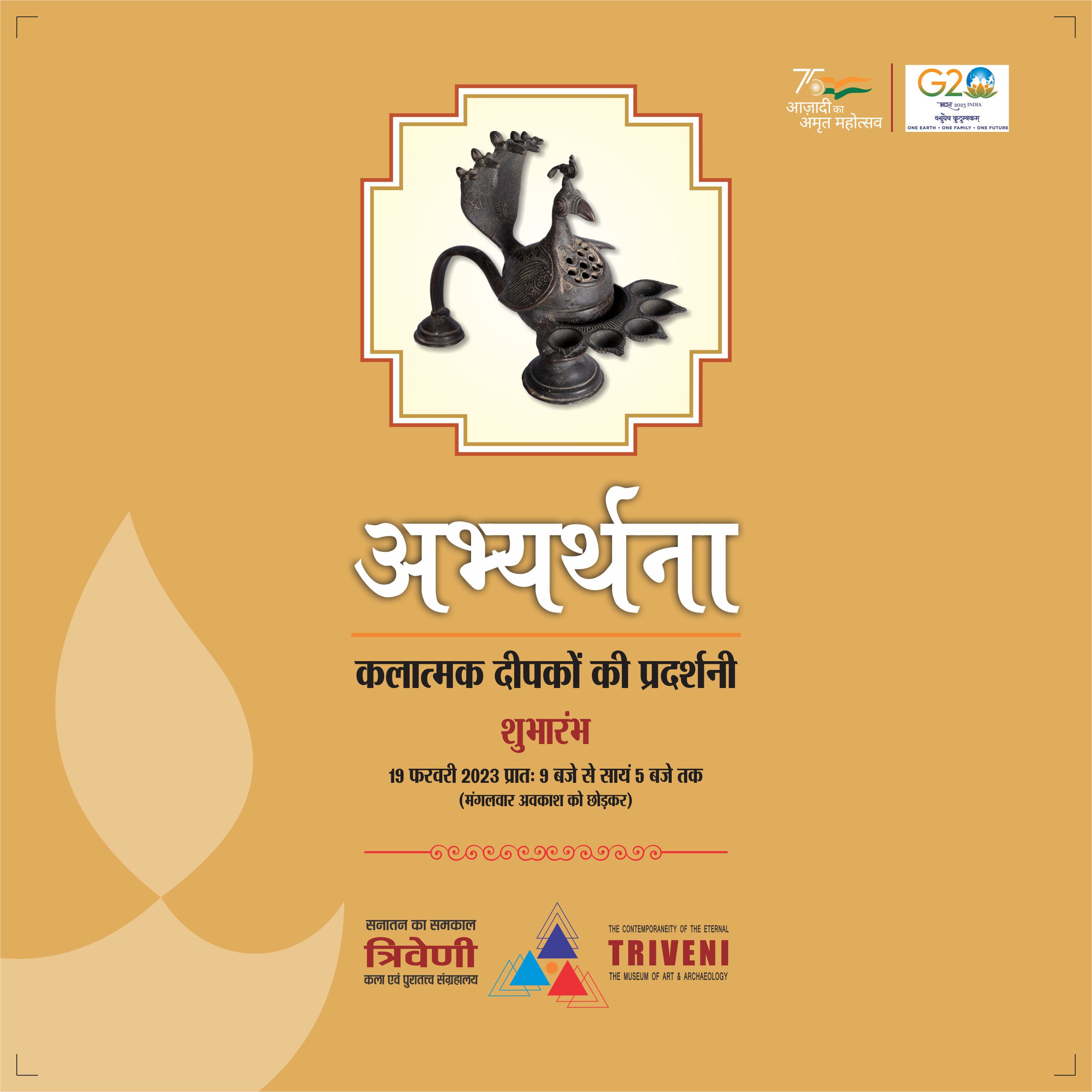 कलात्मक दीपकों की प्रदर्शनी - "अभ्यर्थना" / शुभारंभ - 19 फरवरी 2023 (मंगलार अवकाश को छोड़कर) / वर्तमान समय - प्रातः 08 से रात्रि 10 बजे तक / स्थान - त्रिवेणी कला एवं पुरातत्व संग्रहालय, जयसिंहपुरा, रुद्रसागर - उज्जैन (म.प्र.)