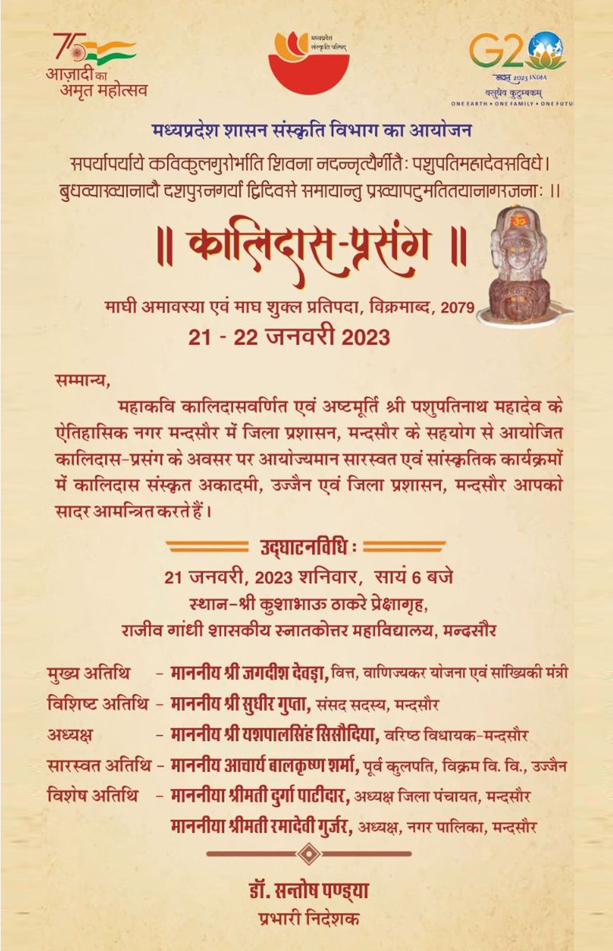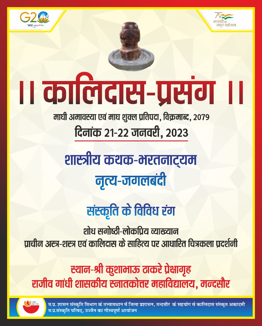 कालिदास साहित्य पर केन्द्रित शोध संगोष्ठी, लोकप्रिय व्याख्यान, चित्रकला प्रदर्शनी प्राचीन अस्त्र-शस्त्रों की प्रदर्शनी, शास्त्रीय नृत्य