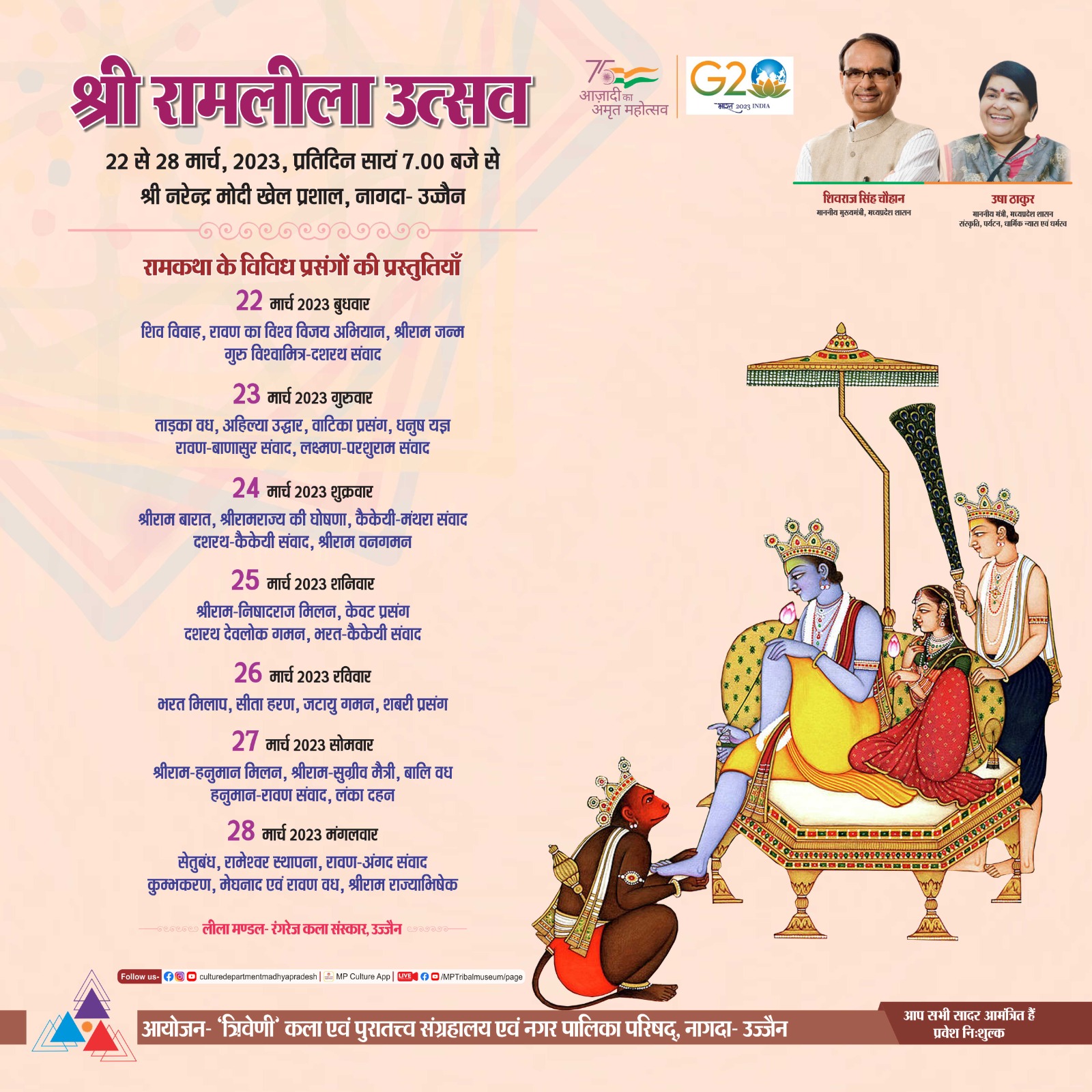 श्री रामलीला उत्सव 22 से 28 मार्च, 2023, प्रतिदिन सायं 7.00 बजे से श्री नरेन्द्र मोदी खेल प्रशाल, नागदा- उज्जैन