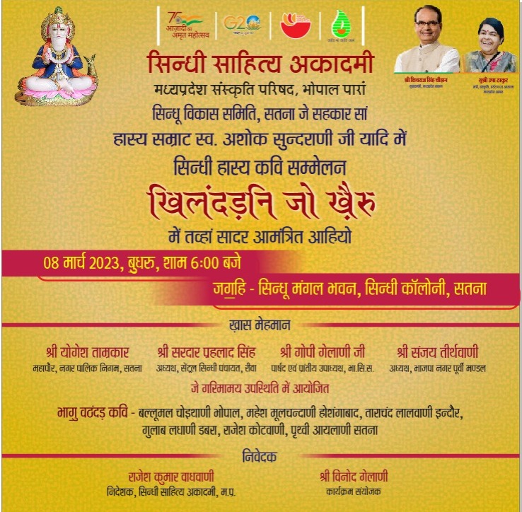 सिन्धू विकास समिति, सतना जे सहकार सां हास्य सम्राट स्व. अशोक सुन्दराणी जी यादि में सिन्धी हास्य कवि सम्मेलन खिलंदड़नि जो ख़ैरु