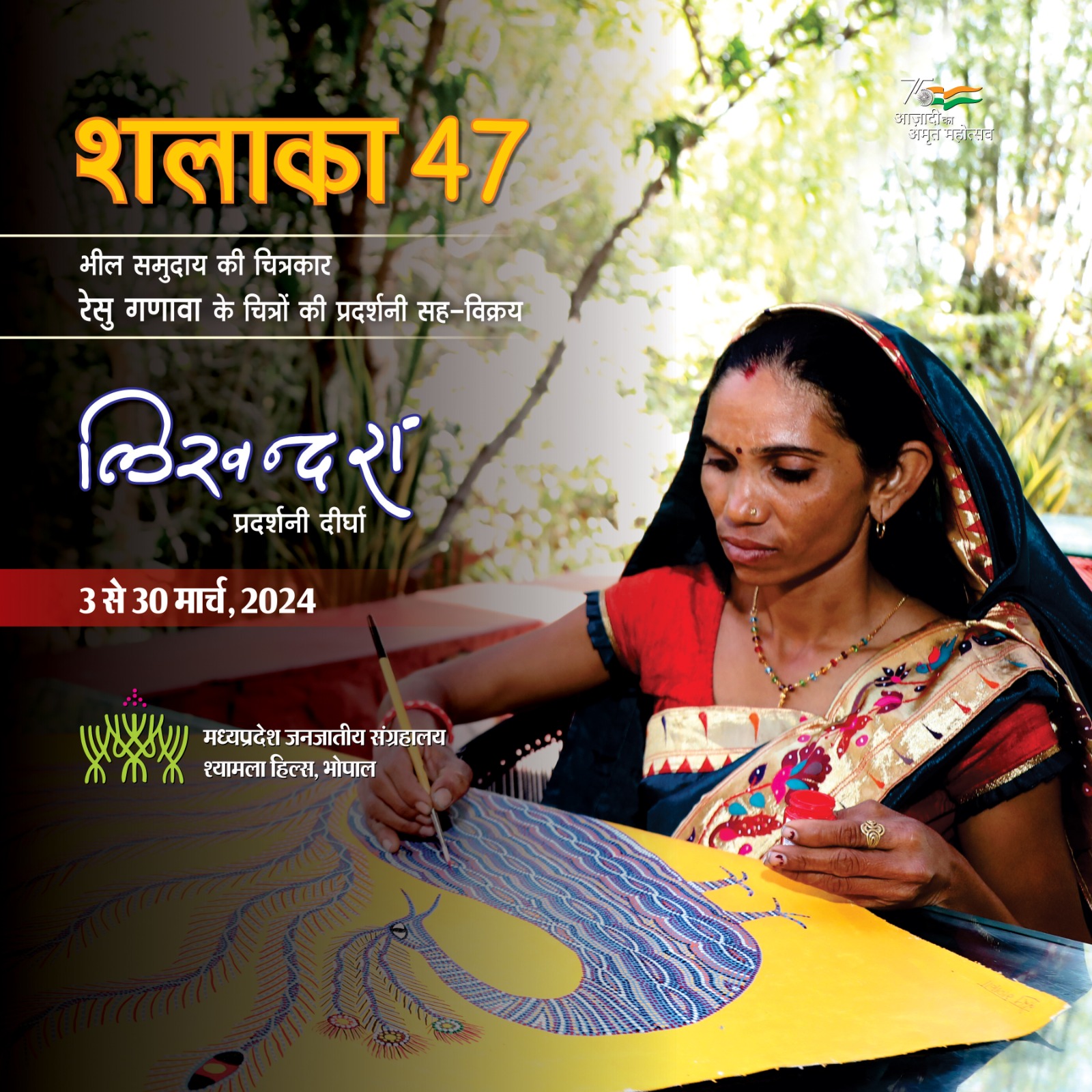 शलाका 47 भील समुदाय की चित्रकार रेसु गणावा के चित्रों की प्रदर्शनी सह-विक्रय 3 से 30 मार्च, 2024. मध्यप्रदेश जनजातीय संग्रहाल. श्यामला हिल्स, भोपाल