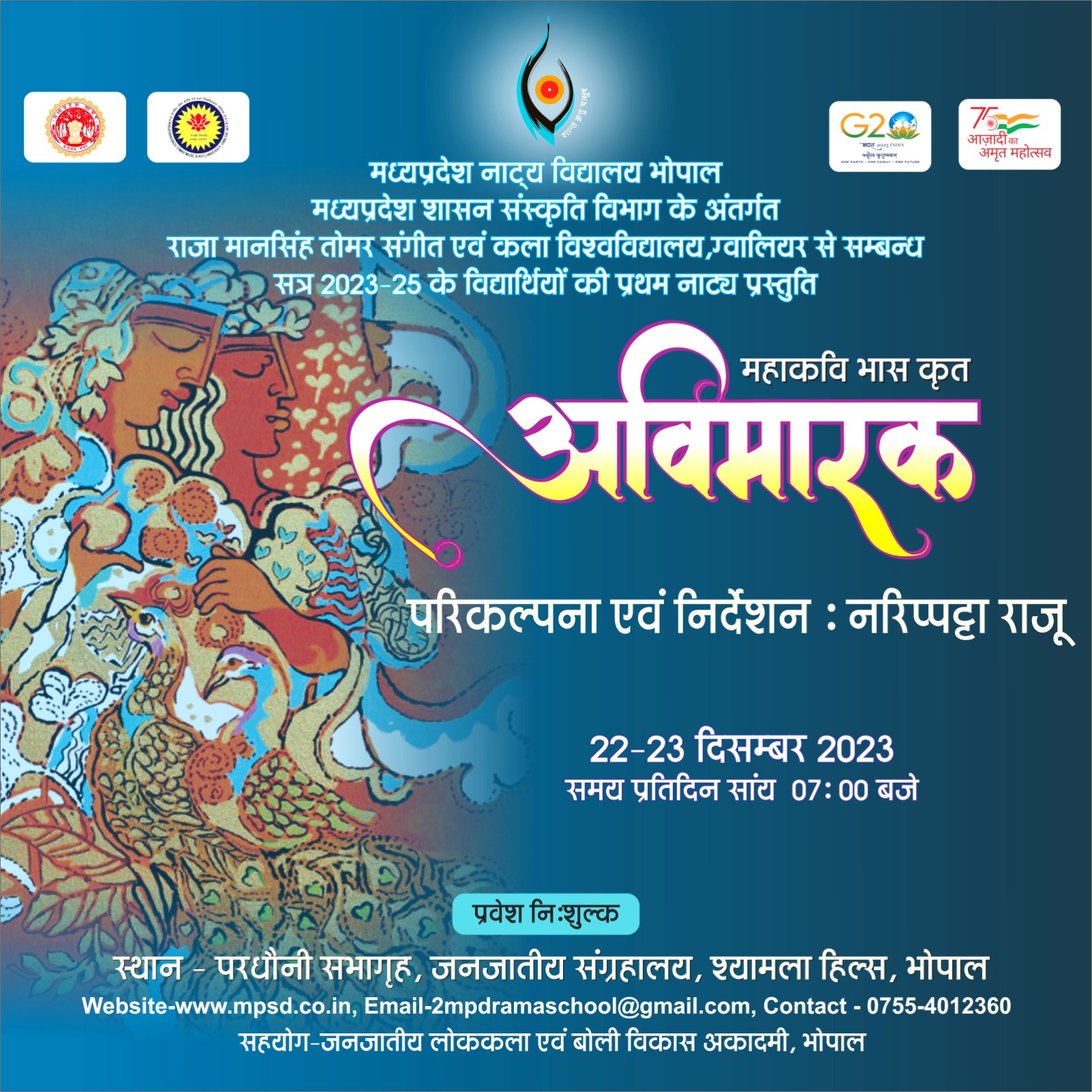 मध्यप्रदेश नाट्य विद्यालय के वर्तमान सत्र २०२३-२५ के विद्यार्थियों की प्रथम नाट्य प्रस्तुति महाकवि भासकृत अविमारक के अवलोकन हेतु आप सभी सादर आमंत्रित है।