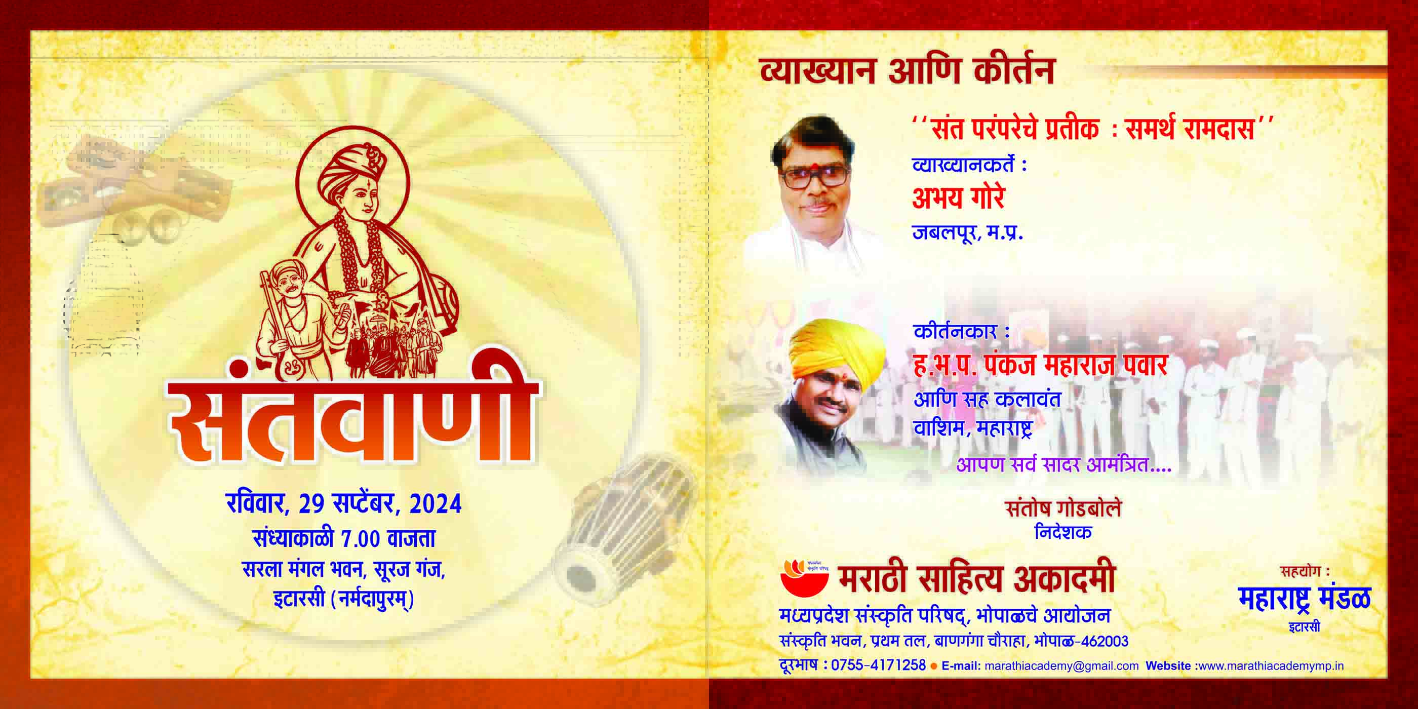 संतों के अवदान पर केन्द्रित व्याख्यान "संत परंपरेचे प्रतीक : समर्थ रामदास एवं मराठी कीर्तन।