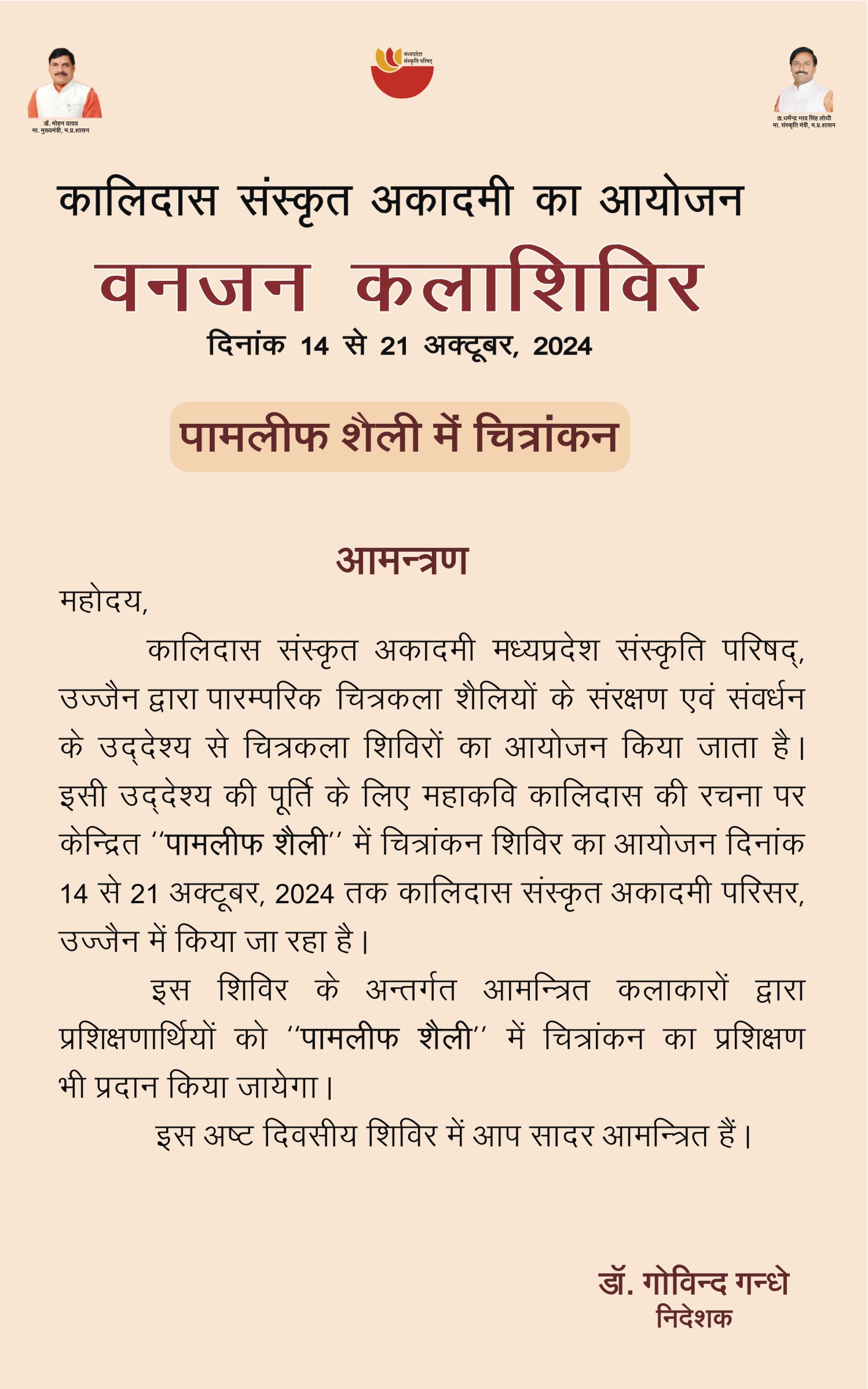 पारम्परिक चित्रकला शैलियों के संरक्षण एवं संवर्धन के उद्देश्य से महाकवि कालिदास की रचना पर केन्द्रित ‘‘पामलीफ’’ शैली पर ओडिशा के कलाकारों द्वारा चित्रांकन।