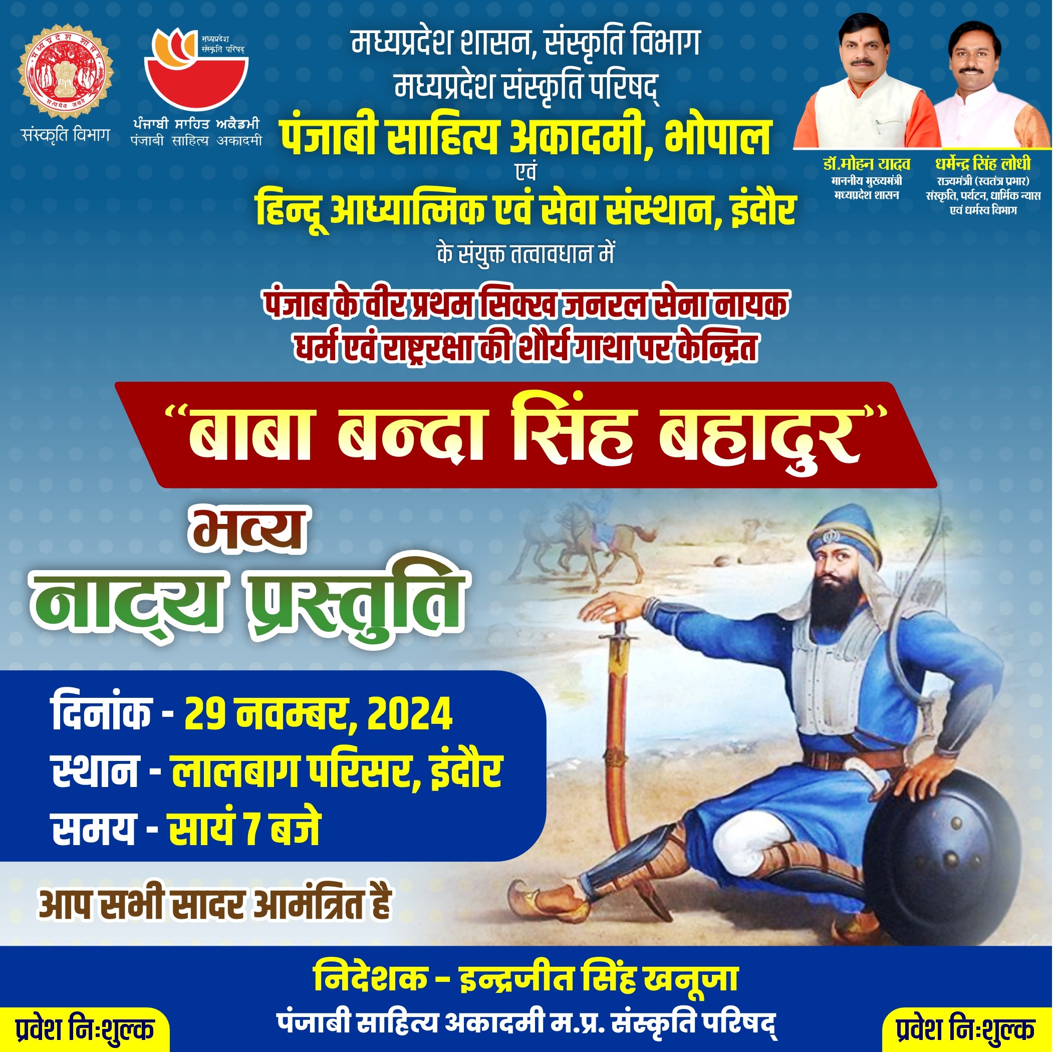 बाबा बंदा सिंह बहादुर सिंह जी की जयंती के अवसर पर 29 नवम्बर 2024 को लालबाग परिसर, इन्दौर में नाट़य प्रस्तुति