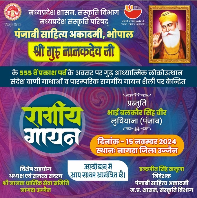 श्री गुरूनानक देव जी 555वें प्रकाश पर्व के अवसर पर उनके पावन संदेशो पर केन्द्रित भाई बलकोर सिंह बीर, लुधियाना द्वारा रागी गायन प्रस्तुति