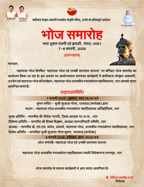 राजा भोज के व्यक्तित्व एवं कृतित्व पर केन्द्रित शोध संगोष्ठी एवं सांस्कृतिक आयोजन।